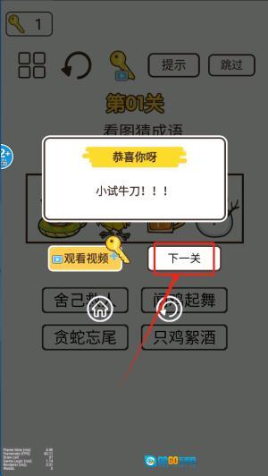 4、点击下一关继续游戏。