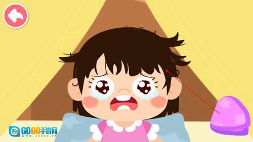 3、先帮妹妹擦一擦小脸蛋,点击右边的毛巾帮助妹妹把脸擦干净。