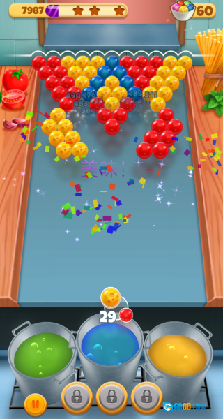 1. 这款游戏最突出的特点,在于它以全球各地的美食为核心打造出清新又明快的视觉主题,不同地区对应的泡泡、背景与音乐,都洋溢着浓郁的本土特色。