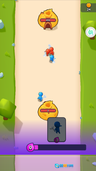 4、借助自动增长的能量招募士兵发起进攻,派遣小队战胜敌人、摧毁对方堡垒,从而解锁更多兵种以及进化阶段。