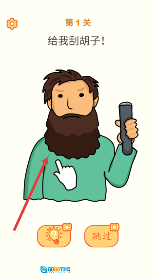 2、进入第1关,按箭头指向在人物胡子处进行擦拭操作,完成“给我刮胡子!”任务。