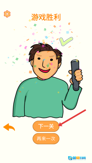 3、游戏胜利后,点击【下一关】按钮,进入下一关继续游戏。