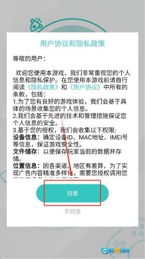 1、进入游戏:首先打开游戏主界面,阅读用户协议与隐私政策后点击“同意”按钮,完成授权进入主菜单。