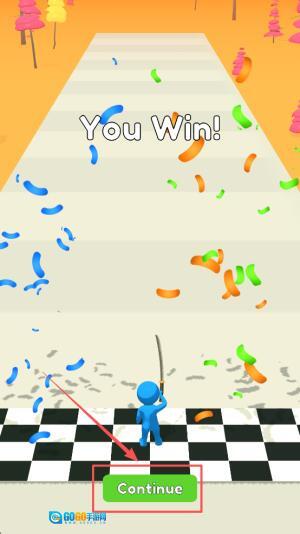4、继续闯关:当画面出现“Continue”按钮,点击即可进入下一关继续切片。