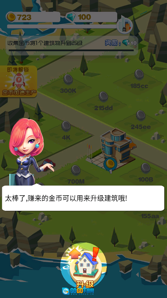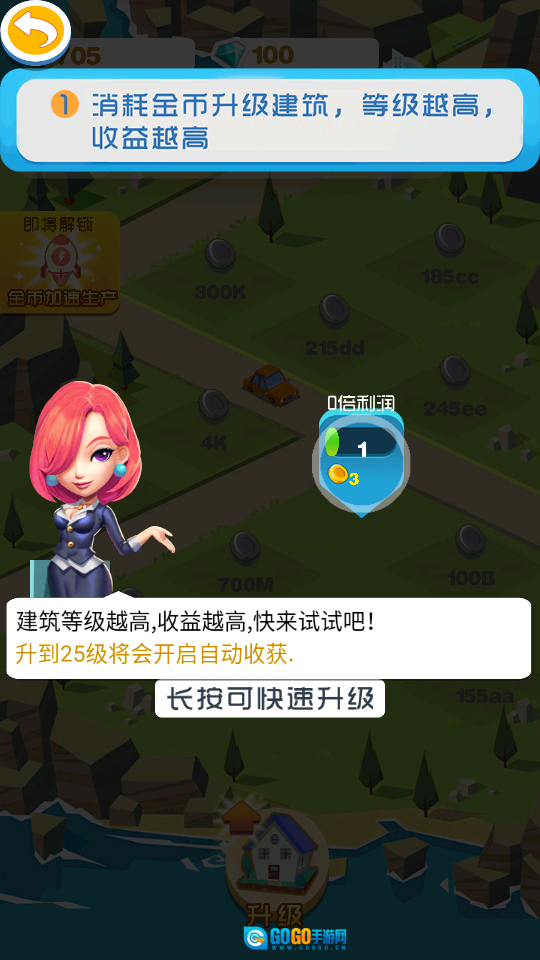2、赚取的金币用于升级建筑,提升收益。
