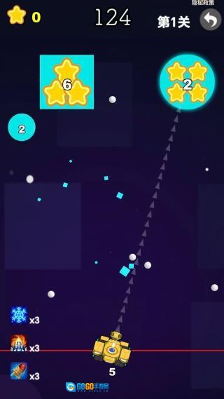 4、发射弹球前,先观察其可能的运动轨迹,利用弹球的反弹特性来瞄准带有数字标识的星星方块,这类高价值目标建议优先击碎;同时,借助弹球的多次弹射,进一步扩大击碎方块的范围。
