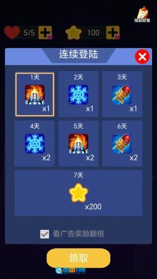 1、每天完成连续登录就能领取道具,这些道具能帮你在关卡里快速清理密集的方块。要是时间充裕的话,记得勾选“看广告奖励翻倍”,这样就能攒下更多道具啦。