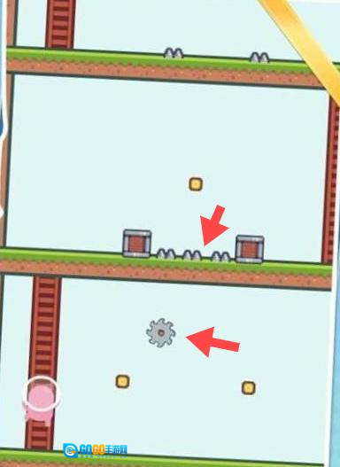 1、在游戏中操控粉色角色进行【连续跳跃】,躲避如尖刺球等障碍,随时随地开启游戏挑战。
