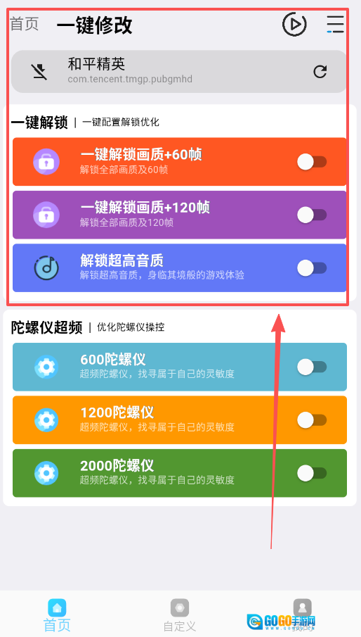 1、首先,启动软件并确认网络连接正常,在首页找到“和平精英”下方的一键解锁功能,点击该功能即可实现基础的画质提升。