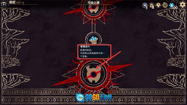4、在关卡界面里,点击标注着【普通战斗】的节点,完成挑战后就能得到【50枚恒星碎片】以及一个宝箱类的奖励。