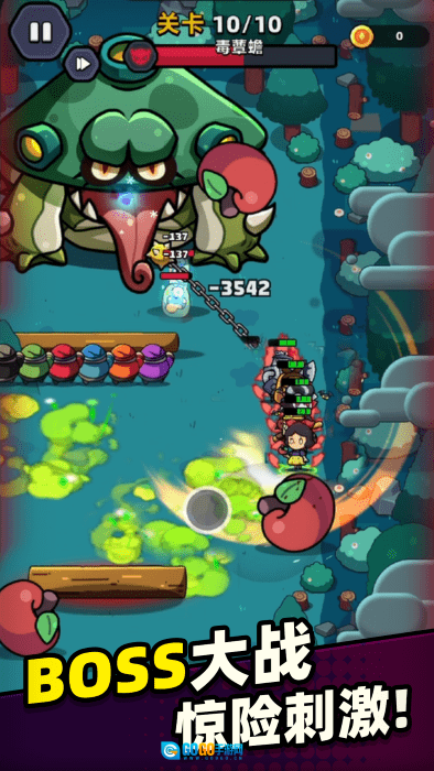 3、进入冒险关卡后,你会遇到各式各样的BOSS,只要先清理掉它周围的小怪,就能用强大的能力来对抗它了。
