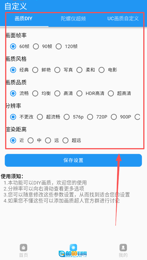 3、要是希望进一步深入学习,首页的“使用教程”会是你的得力助手,其中用最通俗易懂的语言讲解了怎样解锁自定义画质与帧率。