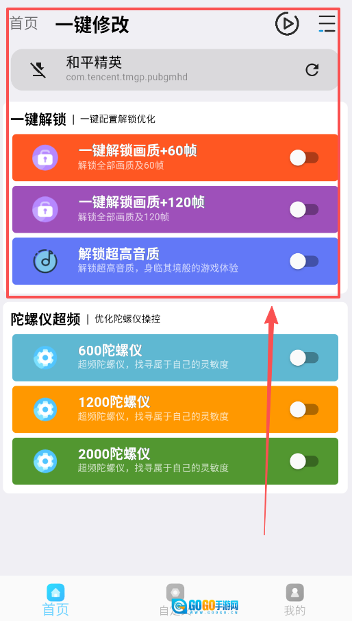 打开软件后先别随意操作,建议从首页的“一键修改”功能入手,找到“一键解锁画质+90帧”之类的选项,点击即可生效。