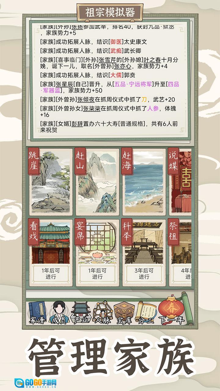3、扩大家族:挑选适合承担相应事务的族人,为家族的各项事务都安排上值得信赖的族人,持续发展壮大,从而扩大你的家族规模。