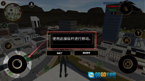 3、移动角色:使用左侧摇杆控制角色在场景中移动。