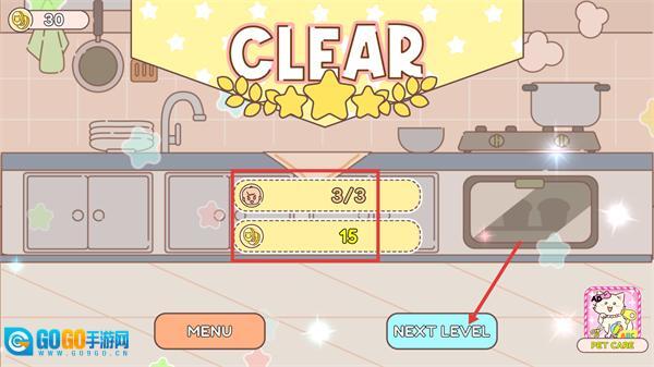 4、完成【3/3-顾客订单】后即可通关并获得相应金币,点击界面上的【NEXT-LEVEL】按钮就能进入下一个关卡。
