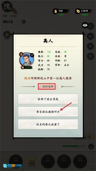 3、在高人事件的【我的选择】板块中,点击【亲自前往邀请对方】这一选项,尝试邀请山中高人加入自己的势力。