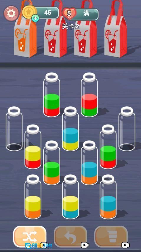 3、没有时间和步数的约束,可灵活地交换液体,凭借你的智慧把所有液体都完美分类,只要能达成完美组合,就能满足所有闯关的要求与目标。