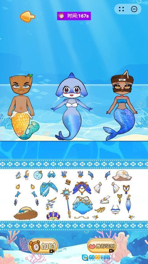 4、每本手账里都能看到三条美人鱼,你可以为她们准备需要的服饰,而且还能在贴纸中找到对应的搭配材料。