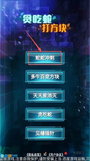 2、选择游戏:在贪吃蛇打方块列表中选择贪吃蛇。