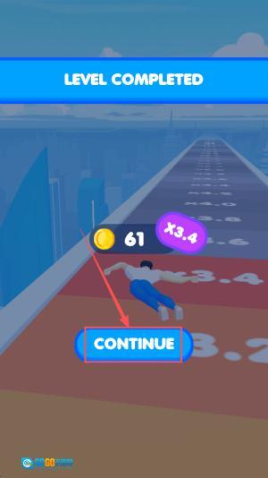 4、完成关卡:屏幕显示LEVELCOMPLETED 61 +3,点击CONTINUE按钮可继续游戏。