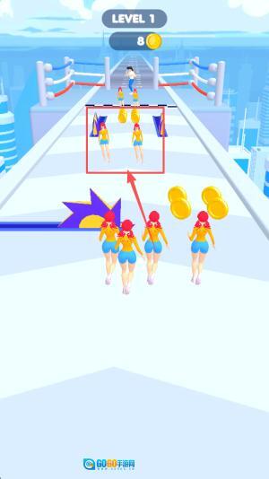 1、玩法团队跑酷闯关:召集众多小姐姐组建跑酷队伍,沿着不同路线前进并整合团队成员,一同冲向终点,每次团队壮大都能带来满满的成就感。