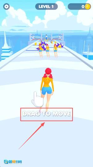 3、拖拽移动:出现LEVEL1后按住并拖动角色。