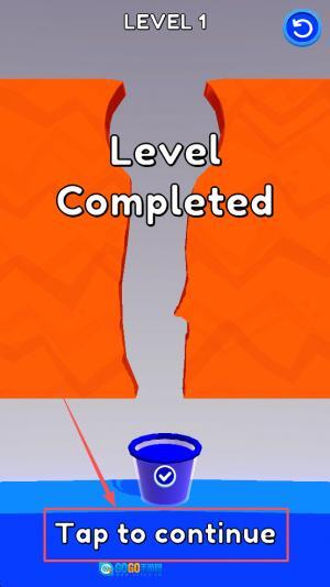 4、完成通关:出现LEVEL1 Level Completed点击Tap to continue进入下一关。