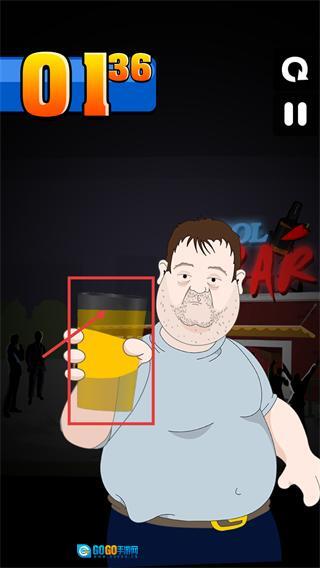 2、关卡中关注【酒杯】状态,操作维持醉汉的平衡以避免酒水洒出,同时留意界面顶部的计时进度。