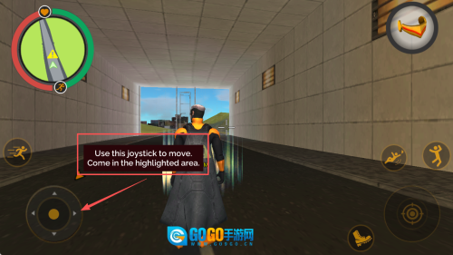 2、角色移动操作:通过操控左侧的摇杆来控制角色的移动方向,引导角色进入游戏界面里的高亮区域。