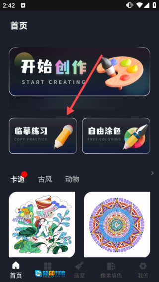 1、进入首页,选择自己感兴趣的模版点击进入,以临摹练习为例。