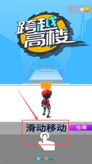 2、进入教程:在“跨越高楼”场景的滑动移动仓库界面进行滑动操作即可开始。