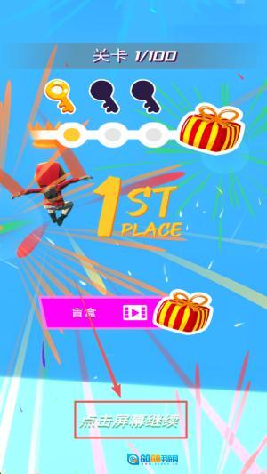 4、完成关卡:在关卡1/100的PLACE界面中,点击屏幕即可进入下一关。