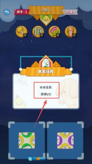2、查看任务:在关卡1分数0的界面阅读获取2分的任务。