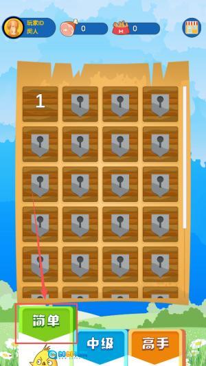1、选择难度:在元家ID司人简单中级高手界面点击简单选项。