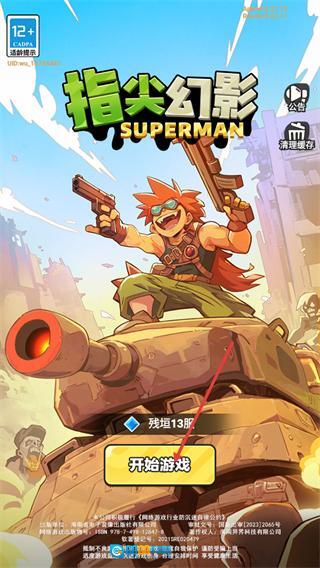 1、进入【指尖幻影-SUPERMAN】,留意【12+-CADPA适龄提示】,选择【残垣13服】后点击【开始游戏】,即可进入游戏关卡。