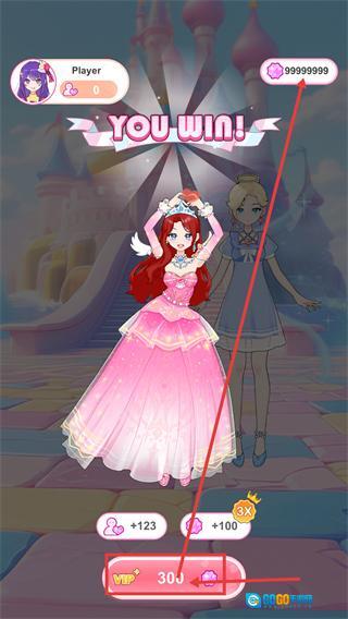 4、装扮对决获胜后会显示【YOU-WIN】,可获得【+123】爱心与【+100】粉钻,也可花费【300】粉钻解锁【VIP】相关增益。