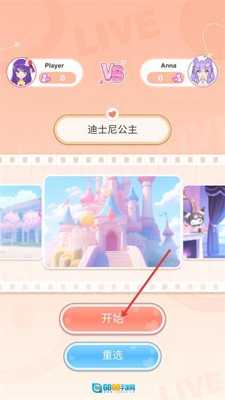 1、进入【迪士尼公主】主题对战界面,确认对手为【Anna】后,点击界面中的【开始】按钮,即可开启本次装扮对决。