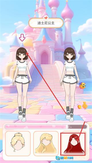 2、在【迪士尼公主】主题的装扮环节里,于底部发型选择栏选中目标长发样式,将其应用到己方角色,完成基础装扮。