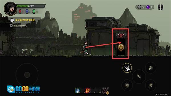 4、操控角色靠近带有徽章标识的门,继续推进【见习鸭卫的结业测验-前进并消灭敌人】这一任务,同时要留意【56/120-生命值】的状态,及时进行恢复。