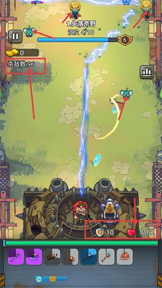 2、在【失落荒野-第4波/共10波】的战斗里,留意【累计杀敌96】和【当前生命值1162】这两个数值,通过运用技能对敌人展开持续攻击,以维持稳定的输出节奏。