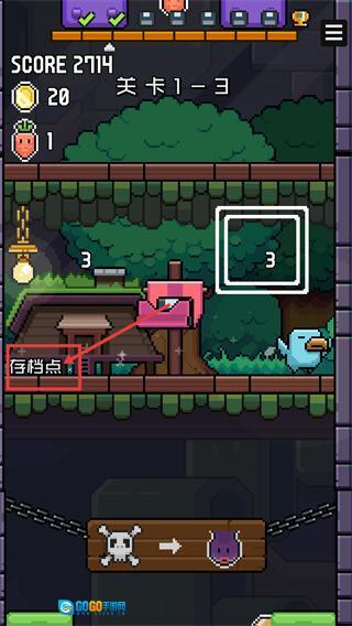 4、进入【关卡1-3】后,先找到场景中的【存档点】进行存档,留意界面的数字【3】标识,持续收集资源推进关卡。