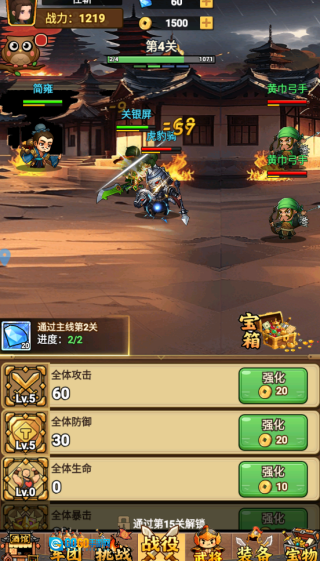 3、踏上一段充满挑战的冒险之旅,在闯过重重关卡的过程中,击败沿途出现的敌人,收集藏在各处的宝箱,开启宝箱就能解锁全新的武将。