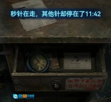 检查中间那张桌子,桌上文件的时间暂时不填,下方抽屉需要五位数字密码,把密码设为62464就能打开抽屉。打开后从右边拿到探视57号的申请表,左边的钟表点击后会显示时间停在11:42,这就是桌上文件要填的收表时间。接着用圆珠笔在桌上的公告上填写11:42,听到脚步声就完成了。