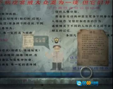 出门后往右边走,去接待室查看柜子,用57号钥匙打开对应的57号柜子,取出57号患者的照片——这么一连串数字念起来还挺顺口的。接着来到走廊,查看左边的房间,透过窗户能看到里面有个空相框,于是我们隔着窗户把那张57号患者的照片贴了上去。这时候有人拉上了窗帘,露出了位置相关的线索,把线索调整正确后,就能打开门进入那个熟悉的房间了。