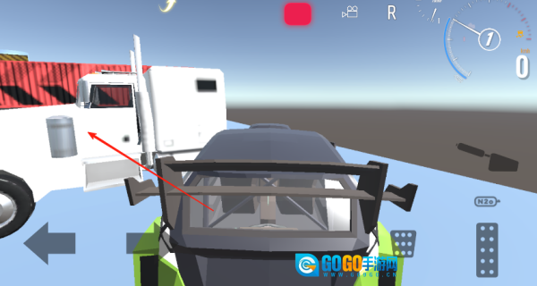1、进入游戏界面后,左侧下方设有方向控制按钮,右侧则分布着油门、刹车与后退按钮,借助这些按钮即可开启挑战。