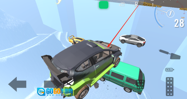 4、另外还有个按钮,能让车子从天上掉下来,体验那种破坏带来的快感,还挺有意思的。