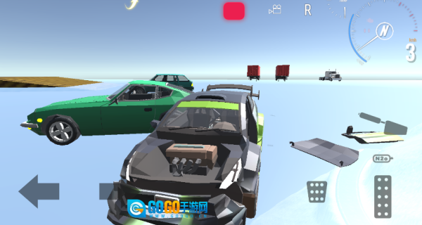 2、驾驶车辆去撞击场景内的物体,把其他车辆全都撞毁,这便是该游戏的目标。