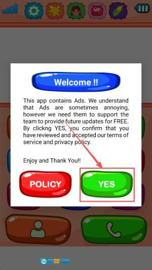 1、接受协议:首先打开欢迎界面,阅读广告说明与隐私政策,点击“YES”接受协议并进入主界面。