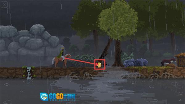 3、砍倒大树后,场景中会出现【发光金币】,操控角色靠近该物品,完成拾取操作。
